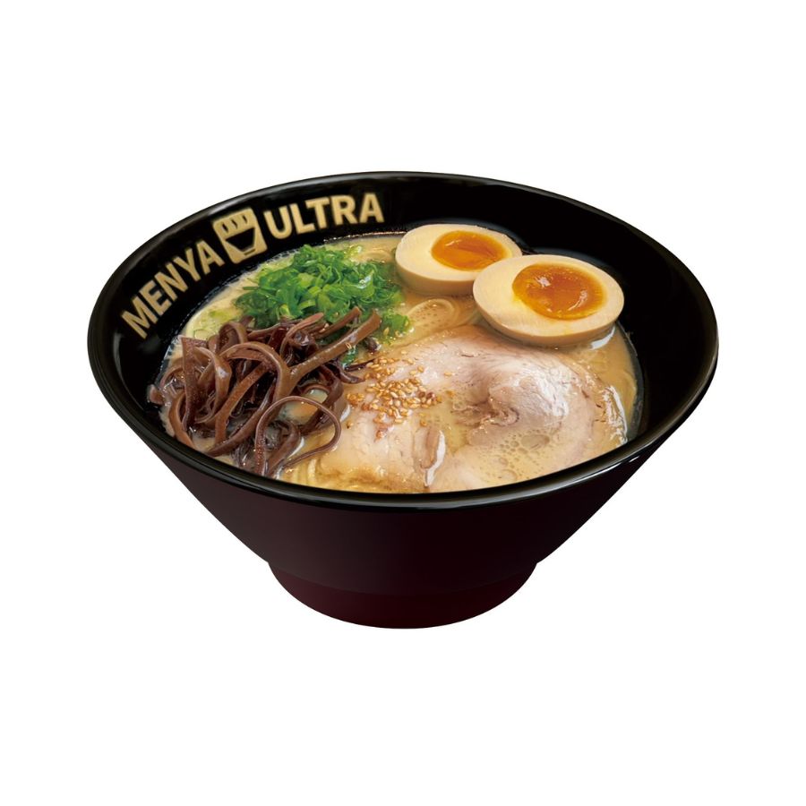 Toppings : One slice of pork chashu, egg, green onion, wood ear mushroom and roasted sesame seeds.